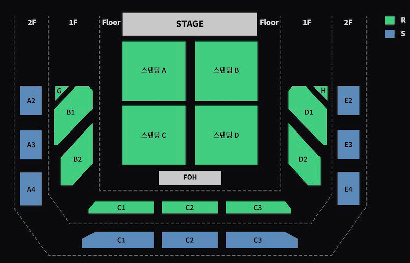 - Floor 층은 스탠딩 구역이며, 1,2층은 지정좌석입니다.