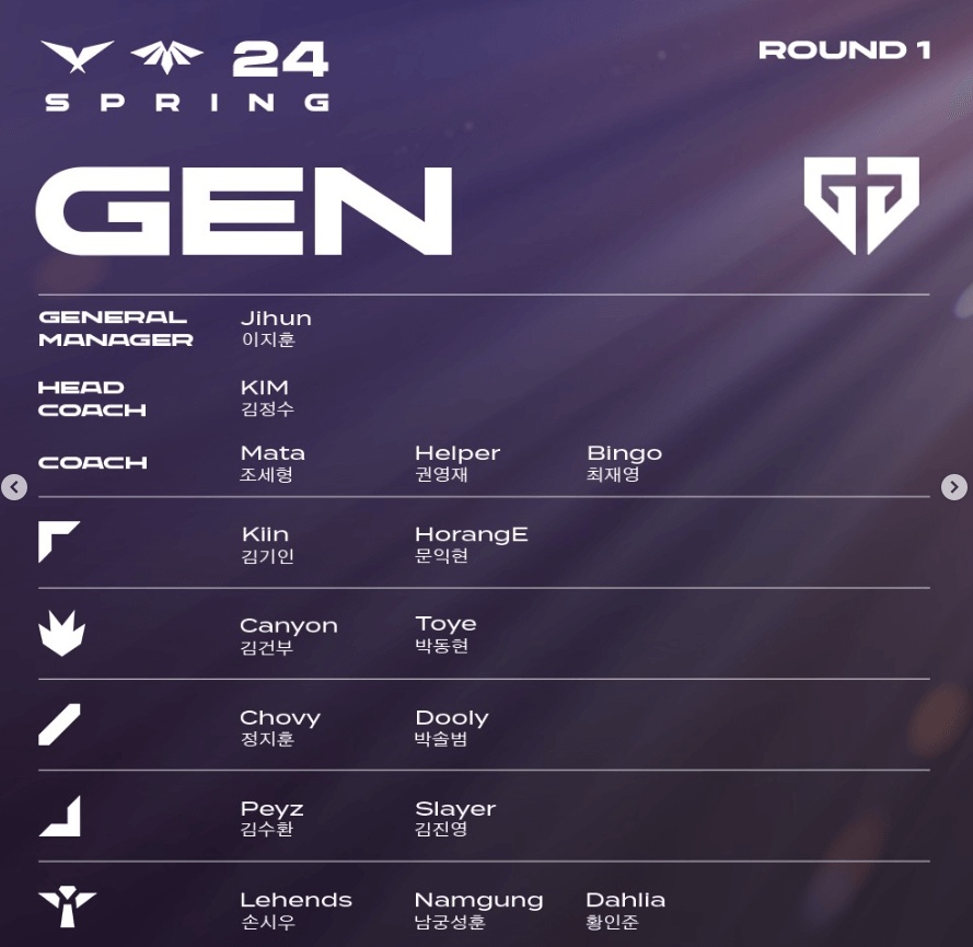 오늘은 2024 LCK 스프링 젠지의 로스터를 알아봤습니다.