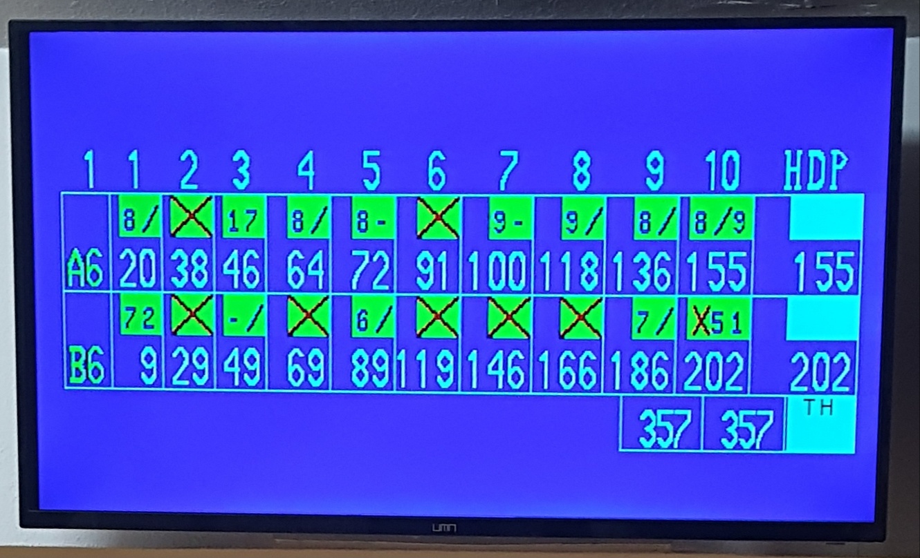 예를 들어 첫 투구 때 5개, 두 번째 투구 때 3개를 쓰러뜨렸다면 점수는 8점입니다.